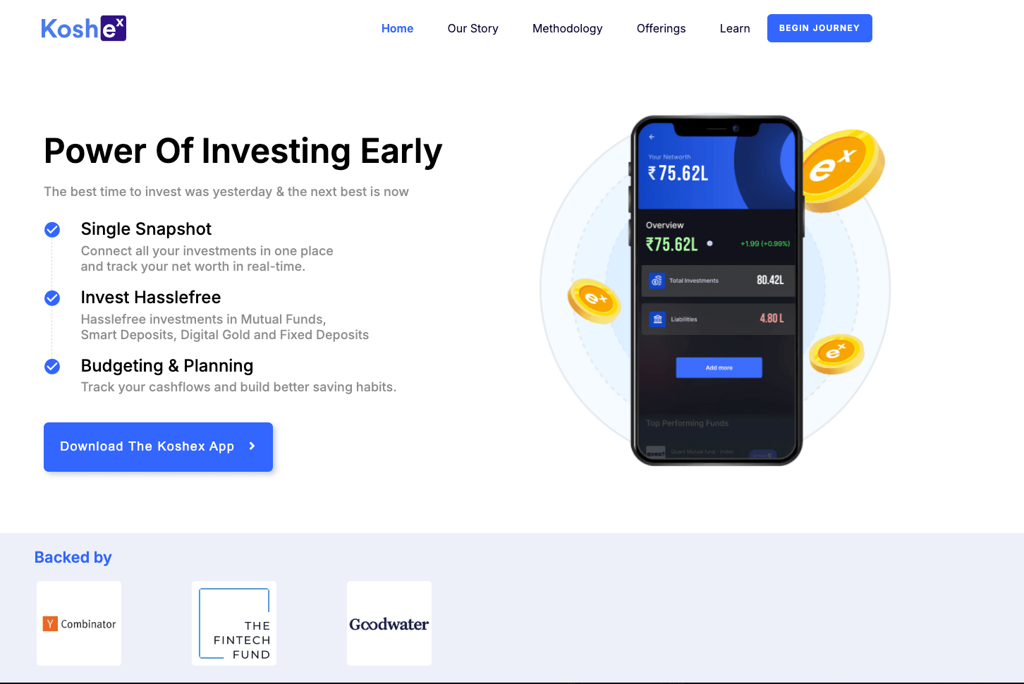 Koshex is an investment platform which offers hyper-personalized buckets tailored to the income of the retail investors, helping them save and double their money through the power of compounding.Koshex is a data-driven platform which provides insights around day to day finances for an individual to save more and invest well.